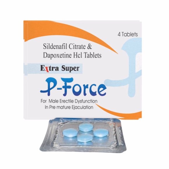 Extra Super P Force is a medication used to treat Erectile Dysfunction (ED) and Premature Ejaculation (PE) in men. It contains two active ingredients: Sildenafil Citrate and Dapoxetine Hydrochloride.